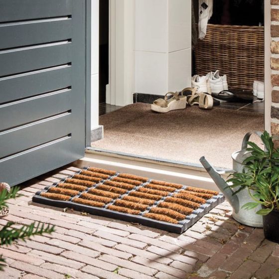 40x60 cm-vá gumená rohož na obdobie jeseň-zima, pretkaná kokosovými vláknami. Odporúčané výlučne pre použitie v obytných!